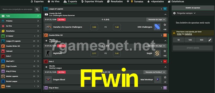 O FFwin oferece uma grande seleção de opções de apostas em e-sports com probabilidades competitivas